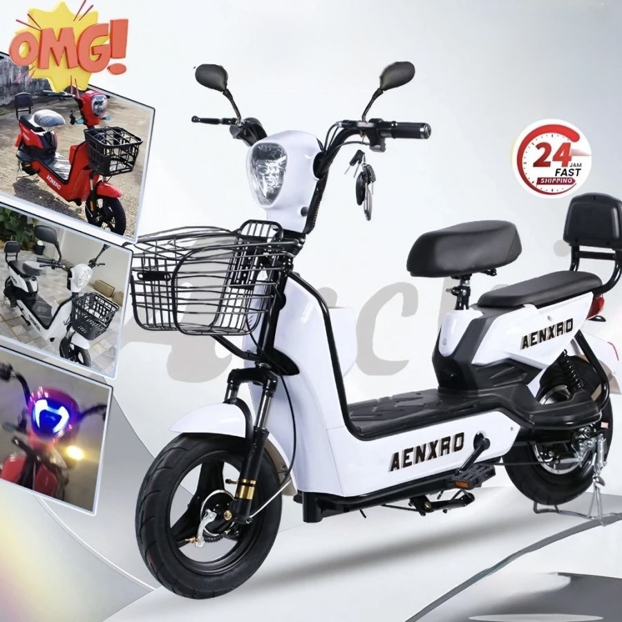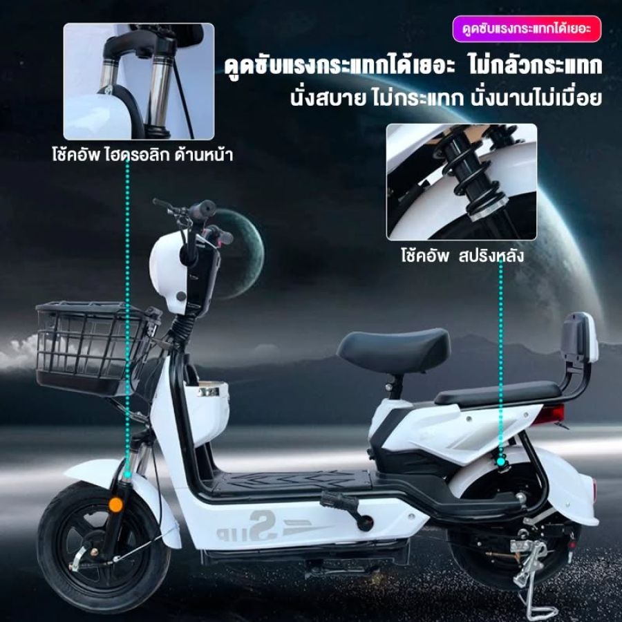จักรยานไฟฟ้า แบตเตอรี่ 4 ก้อน รถไฟฟ้า 48V-12A รถไฟฟ้าผู้ใหญ่ electric bike มีกระจกมองหลัง ตะกร้า ที่ชาร์จ