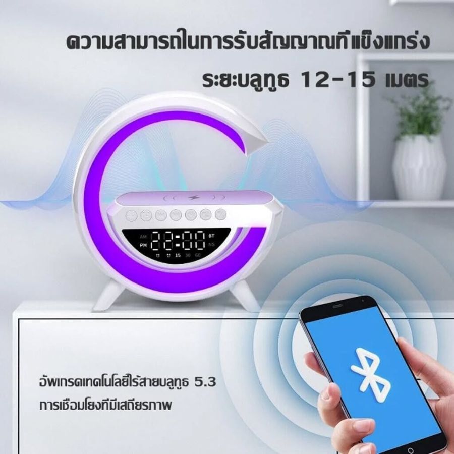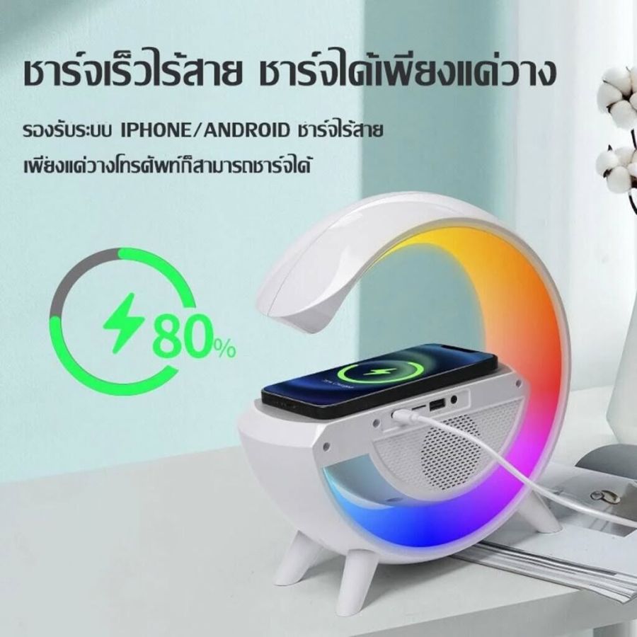โคมไฟลำโพงบลูทูธ 4 in1 แท่นชาร์จไร้สาย15W โคมไฟ RGB นาฬิกาปลุก Wireless Charging Speakerรองรับการ์ด TF ดิสก์ U