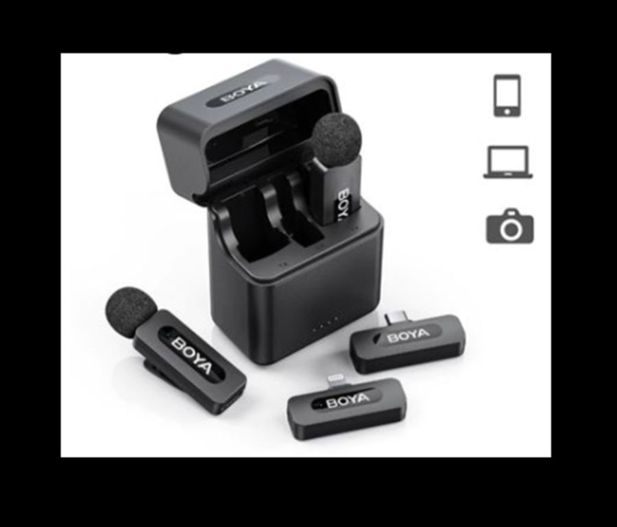 ไมโครโฟนไร้สาย BOYA BY-V3 series รุ่นอัปเกรดแบบสองช่องสัญญาณ น้ำหนักเบา พกพาสะดวก มาพร้อมกล่องชาร์จที่ให้แบตเตอรี่ใช้งานได้ตลอดทั้งวัน พร้อมเทคโนโลยีตัดเสียงรบกวน ให้เสียงใสคมชัด เชื่อมต่อง่ายด้วยระบบจับคู่อัตโนมัติและ Plug-and-Play เหมาะสำหรับการสร้างคอนเทนต์รายวัน สัมภาษณ์ข่าว และการประชุมทางไกล