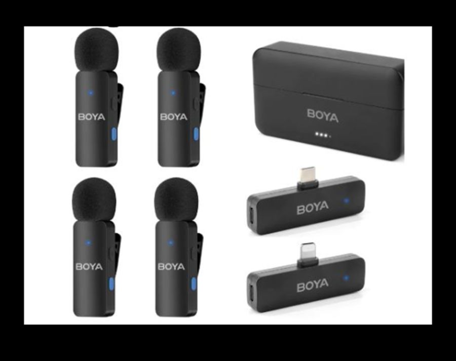 BOYA BY-V4 ไมค์ลอยไร้สาย พร้อมกล่องชาร์จ ตัดเสียงรบกวน ที่รองรับไมโครโฟนพร้อมกันได้สูงสุด 4 สำหรับ Vlog iPhone Type-C 3.5mm