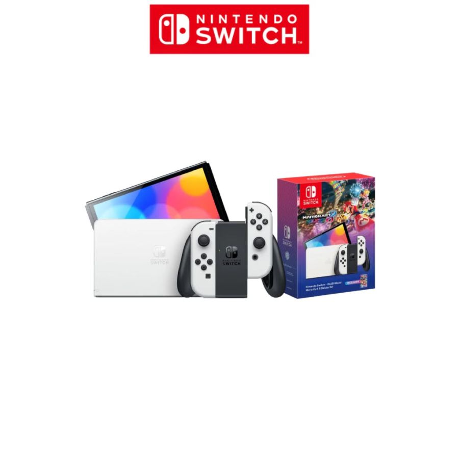 Nintendo Switch - OLED Model มาพร้อมกับความจำเครื่องขนาด 64GB (มีการสำรองให้กับระบบปฎิบัติการของตัวเครื่อง), มีการอัพเกรดระบบเสียงในโหมด Handheld และ Tabletop, ขาตั้งตัวเครื่องแบบยาว, dock รูปแบบใหม่มาพร้อมการเชื่อมต่อด้วยสาย LAN (LAN cable sold separately).