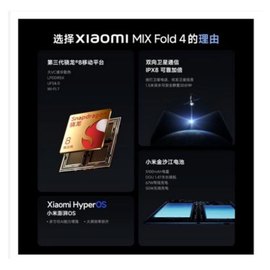 Xiaomi MIX Fold 4 Snapdragon 8 Gen 3 7.98inches Foldable AMOLED 5100mAh Xiaomi Folding screen mobile phone 12 GB+256 GB